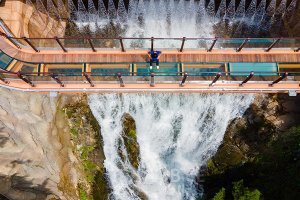 폭포 위를 걸을 수 있는 유리 전망대가 있다는 점에서 추천하는 곳이에요. 발아래 폭포가 떨어지는데 그 위를 걸으니 이색적이더라고요. 그리고 여기서 조금만 걸어가면 용추 폭포 전망대를 볼 수 있는 또 다른 사진 스폿이 있습니다. 폭포와 사람을 함께 찍기가 어렵긴 했는데 그래도 인생 사진이 완성되었답니다.
